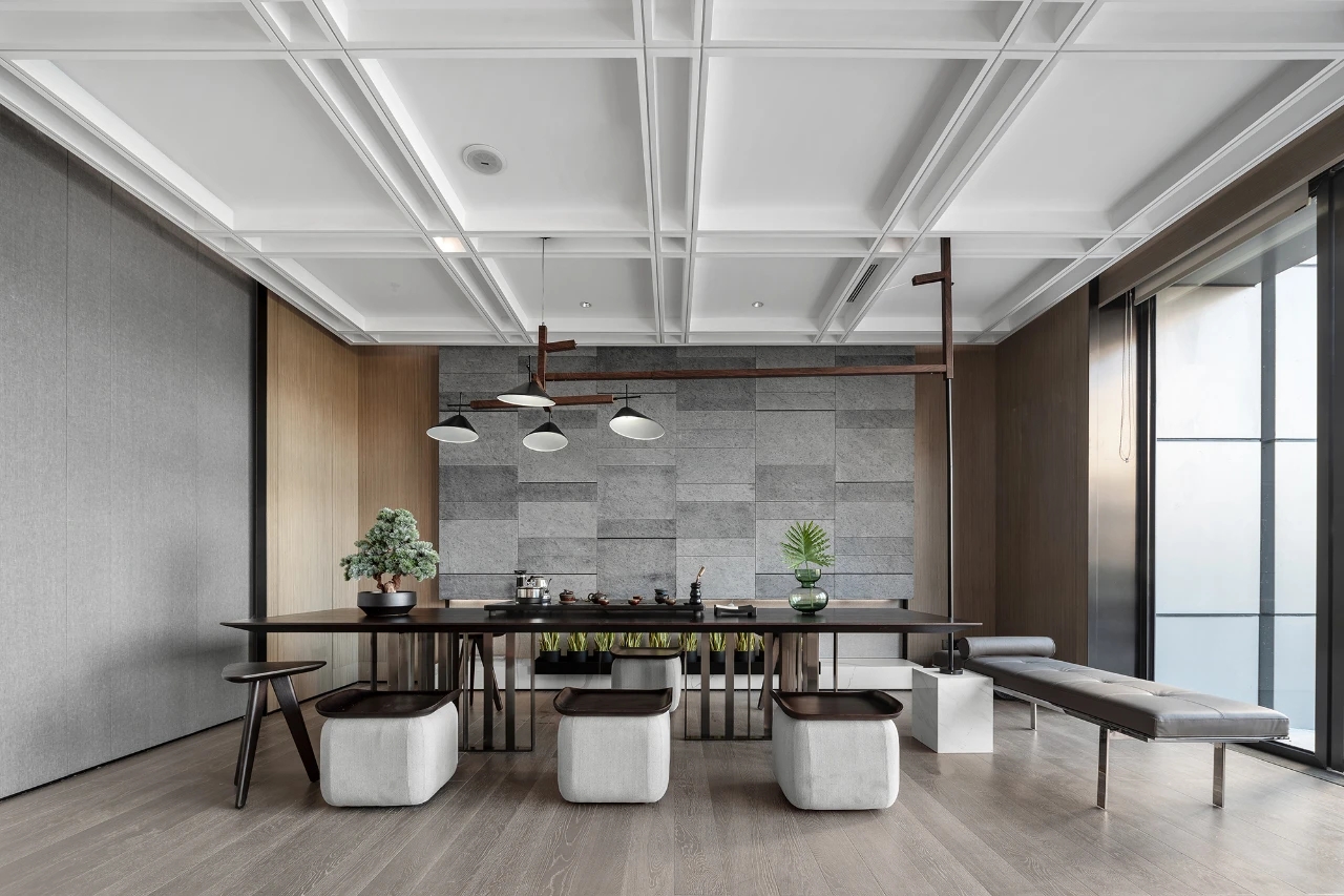 建筑面積1800㎡,我司負(fù)責(zé)售樓部的影音室、約談區(qū)、接待區(qū)、沙盤區(qū),會(huì)所的茶藝室、瑜伽室、閱讀室、泳池、更衣室。該項(xiàng)目難點(diǎn)在于工期短、標(biāo)準(zhǔn)高、任務(wù)重。施工過程需要協(xié)調(diào)大量工種,24小時(shí)不間斷穿插施工,對(duì)于工期、質(zhì)量、安全保證方面是一個(gè)巨大的考驗(yàn),且受新冠疫情影響,大量工廠還未開工,而項(xiàng)目所使用的定制異形不銹鋼屏風(fēng)、不銹鋼柜子、異形鋁板、進(jìn)口潔具、進(jìn)口馬賽克等加工周期長且工藝復(fù)雜的材料,對(duì)采購與運(yùn)輸工作帶來巨大挑戰(zhàn)。