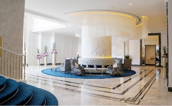 東海國際酒店位于深圳市福田區(qū)深南大道7888號,建筑面積為14135㎡。我司主要承建酒店一層大堂吧、電梯間、十一至十八層客房部等部位的地面、墻面、天花裝飾工程,房間內(nèi)防水工程,機電工程等,造價3648萬元,工期252天。